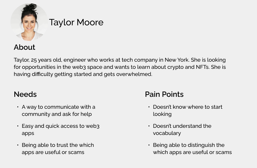In this flowchart, Taylor discovers a dapp through the "Get Started" CTA button on the homepage.